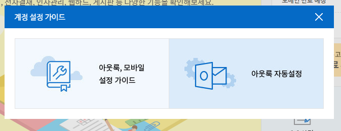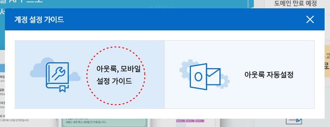 그리고, 좌측의 [아웃룩, 모바일 설정 가이드] 메뉴에 접속하시면 가이드를 다운로드하실 수 있습니다.
