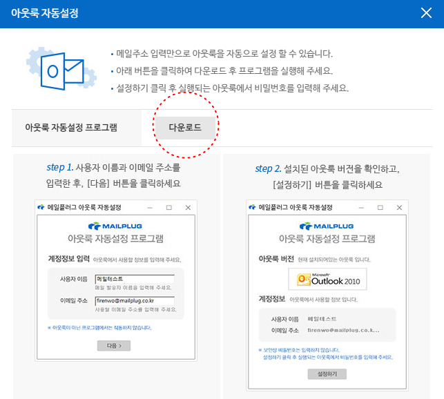 메일플러그 홈페이지에서 상세한 세팅 가이드를 다운로드하실 수 있습니다.