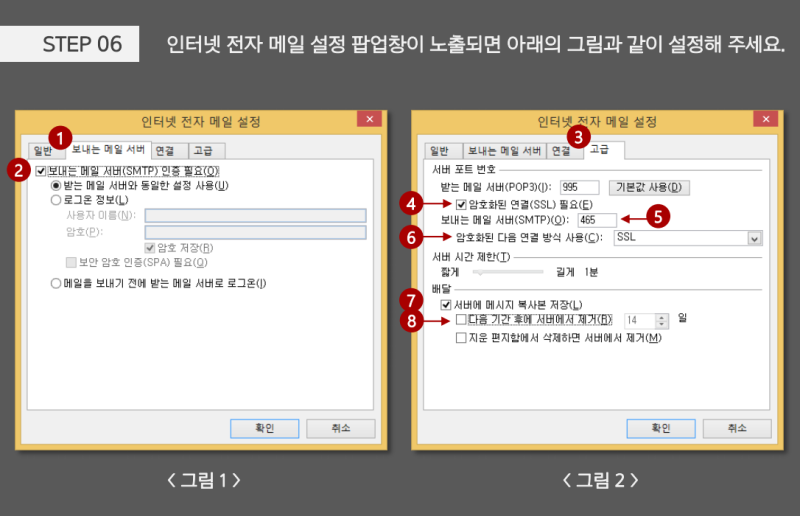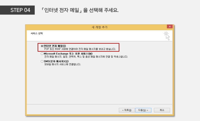 STEP 04_인터넷 전자 메일 설정 팝업창이 노출되면,